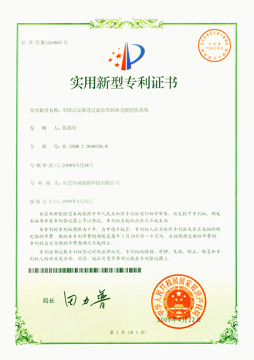 單段式反滲透過濾裝置的滲透膜清洗系統